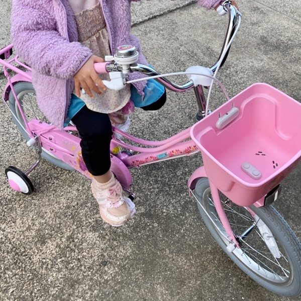 ちなみに、自転車はカインズで16インチ、約2万5千円のラプンツェルの自転車を購入してもらいました。子どもが一目惚れした自転車です。TSマークは別料金だそうで、貼ってありませんでした。だいたい3年くらいでサイズアップのため買い替えが必要になります。