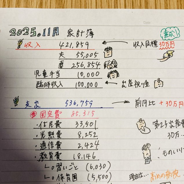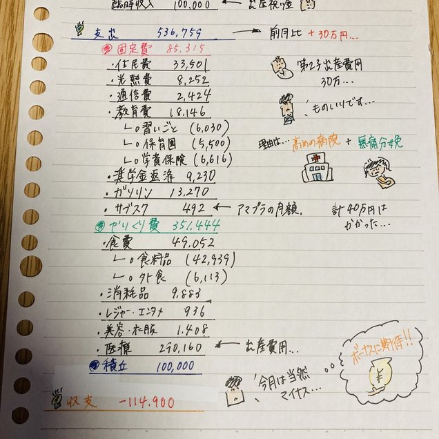 - 臨時収入:100,000円(自治体からの出産祝い金)