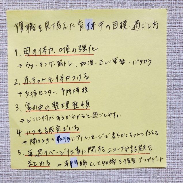 育休中の目標を5つ立てました。生活の中で達成しやすいよう、ハードルを下げています。
