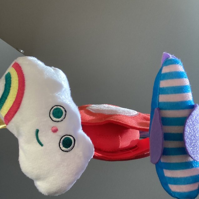 1人では、キックして音を鳴らしたり、雲の顔を見つめたり、「メロディータンバリン」の音楽を聴いて楽しんでいるようです。