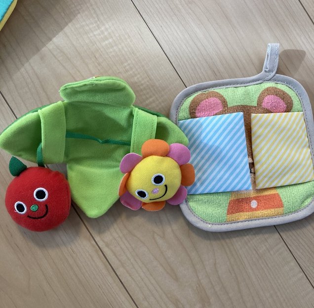 もちろん、親が近くにいて、声かけをしたり「メロディータンバリン」に合わせて歌ったりして一緒に遊ぶこともあります。カシャカシャと音がする「ちょうパペット」で話しかけられるのも好きなようです。