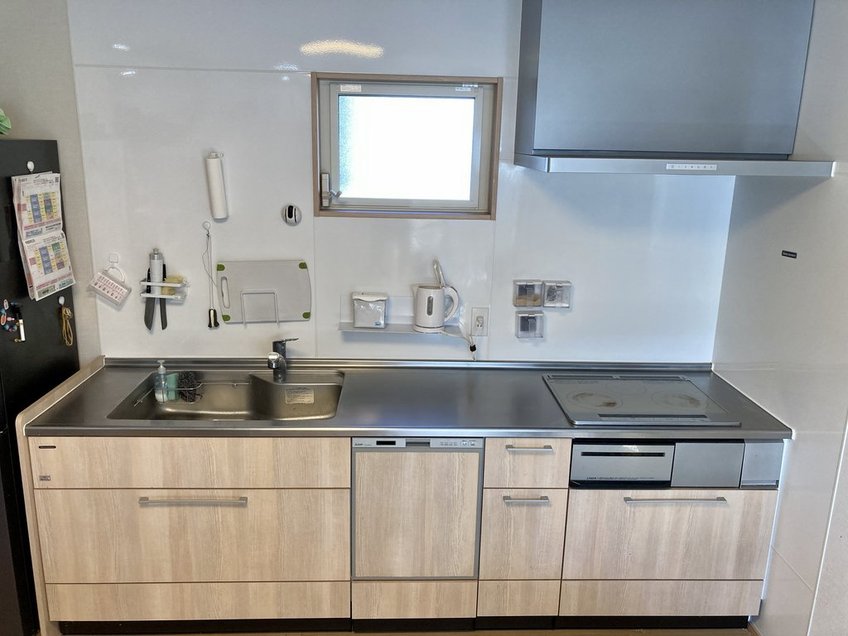 キッチンの背面に光取り用と換気用の小さめ窓を付けましたが、少し場所が悪く窓が開けずらい。つけるとしてもマグネットをつける範囲を確保するために、もっと上につけても良かったかもしれない。