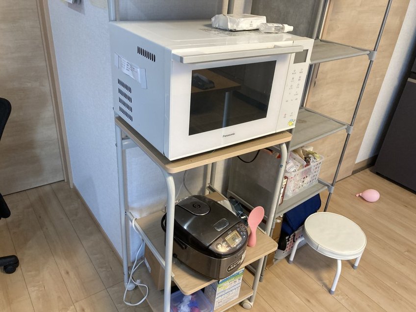ただ、いまは前の家から引き継いだ既成のレンジ台にレンジや炊飯器を置いていますが、デッドスペースも多くどうにかしたいところ。スペースを有効活用して定位置を決めたいところですが、ずっと仮置きみたいになっています。