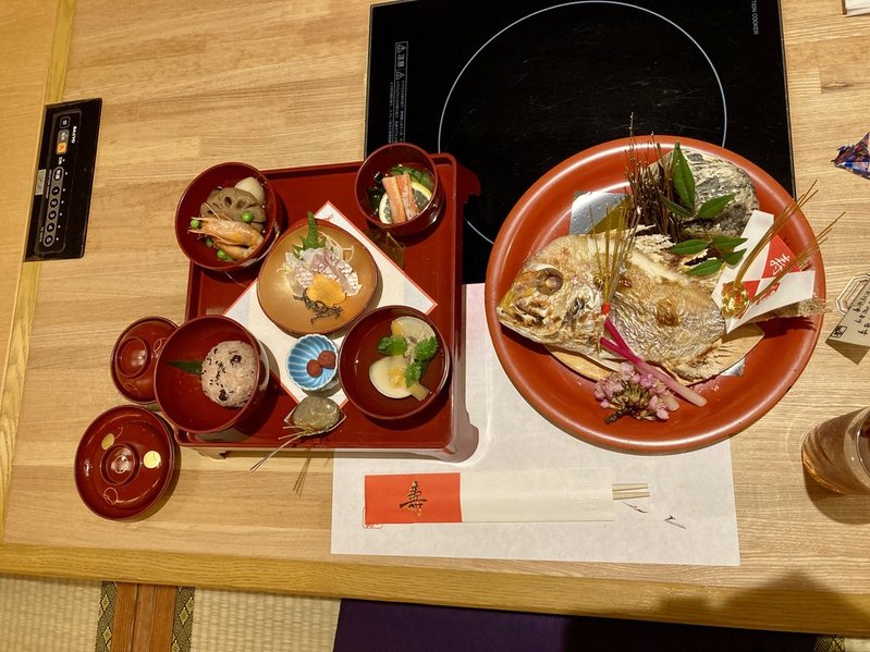 - 12時30分:お食い初め終了。授乳。大人と上の子の料理が運ばれる。