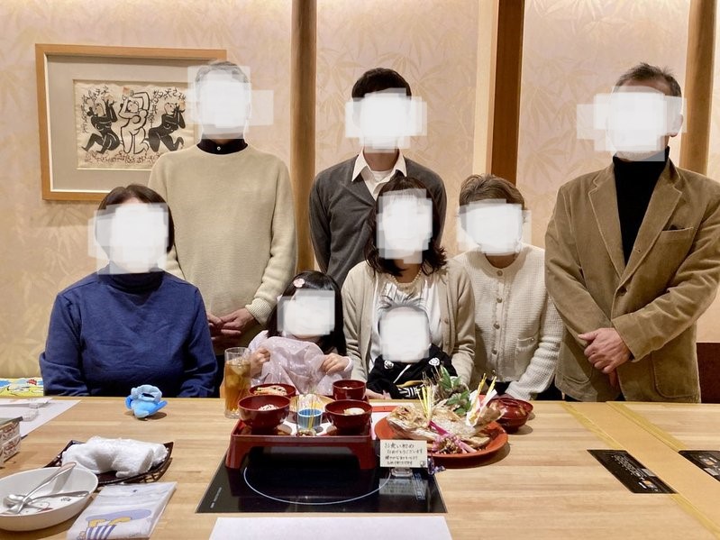 儀式の最後に、お店のカメラとママのスマホのカメラで写真を撮ってくれました。食事後、現像した写真を3家族分くれそれぞれお土産に持って帰れて嬉しかったです。