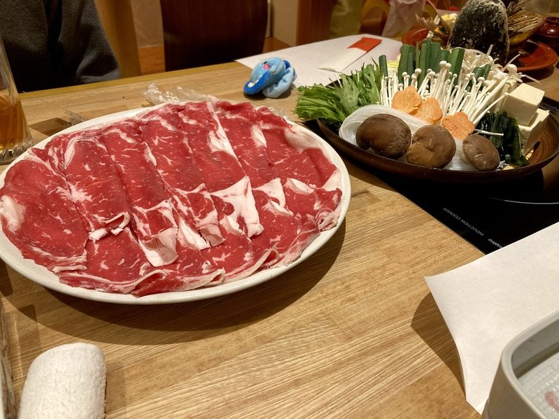 - 13時10分:メインディッシュのしゃぶしゃぶ用のお肉とお野菜が運ばれる。授乳。